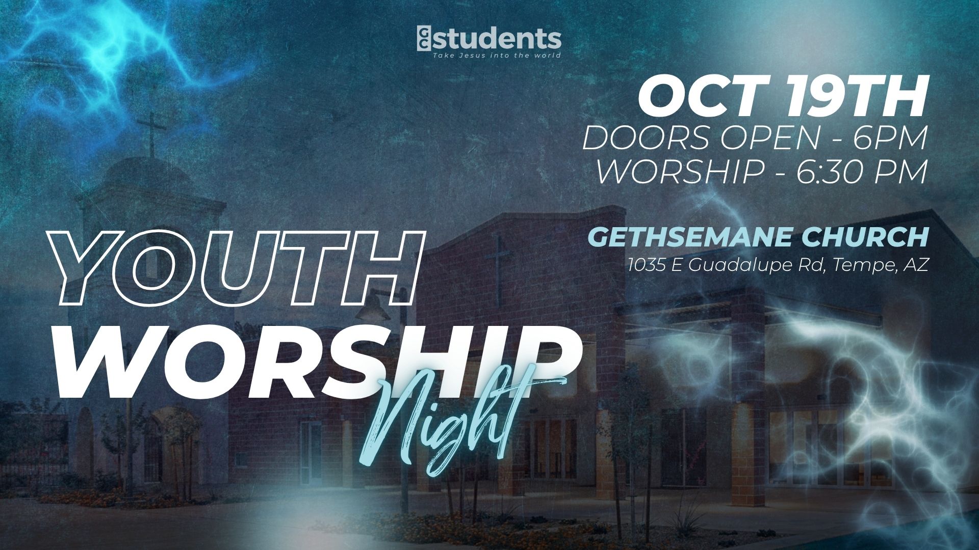 We are hosting a Youth Worship Night at Gethsemane! October 19 we're inviting other Lutheran churches in the Valley to join us for an awesome worship experience led by our own worship leader Abby. Come at 6pm for outdoor fun and snacks, then worship starts in the Worship Center at 6:30pm. Invite some friends, too!